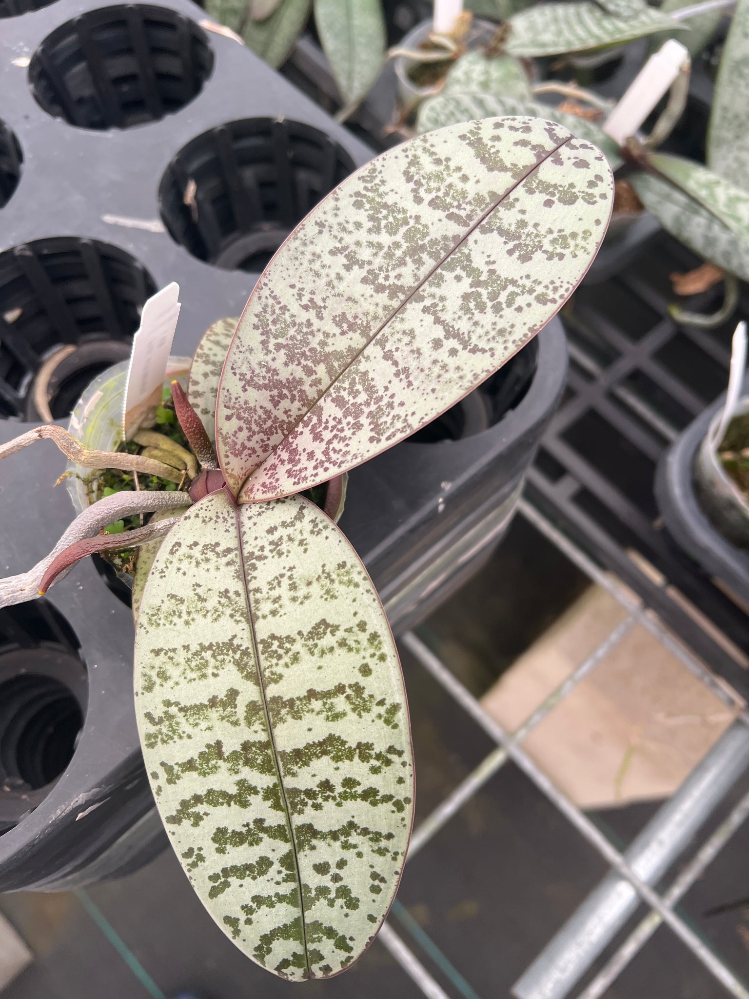 The leaves are oval shaped and currently five leaves on the plant as of November 2025